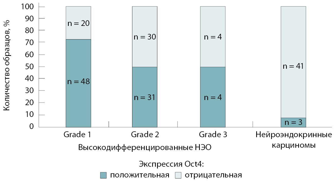 Таблица 3. Особенности экспрессии Oct4 в образцах нейроэндокринных опухолей различной локализации и дифференцировки