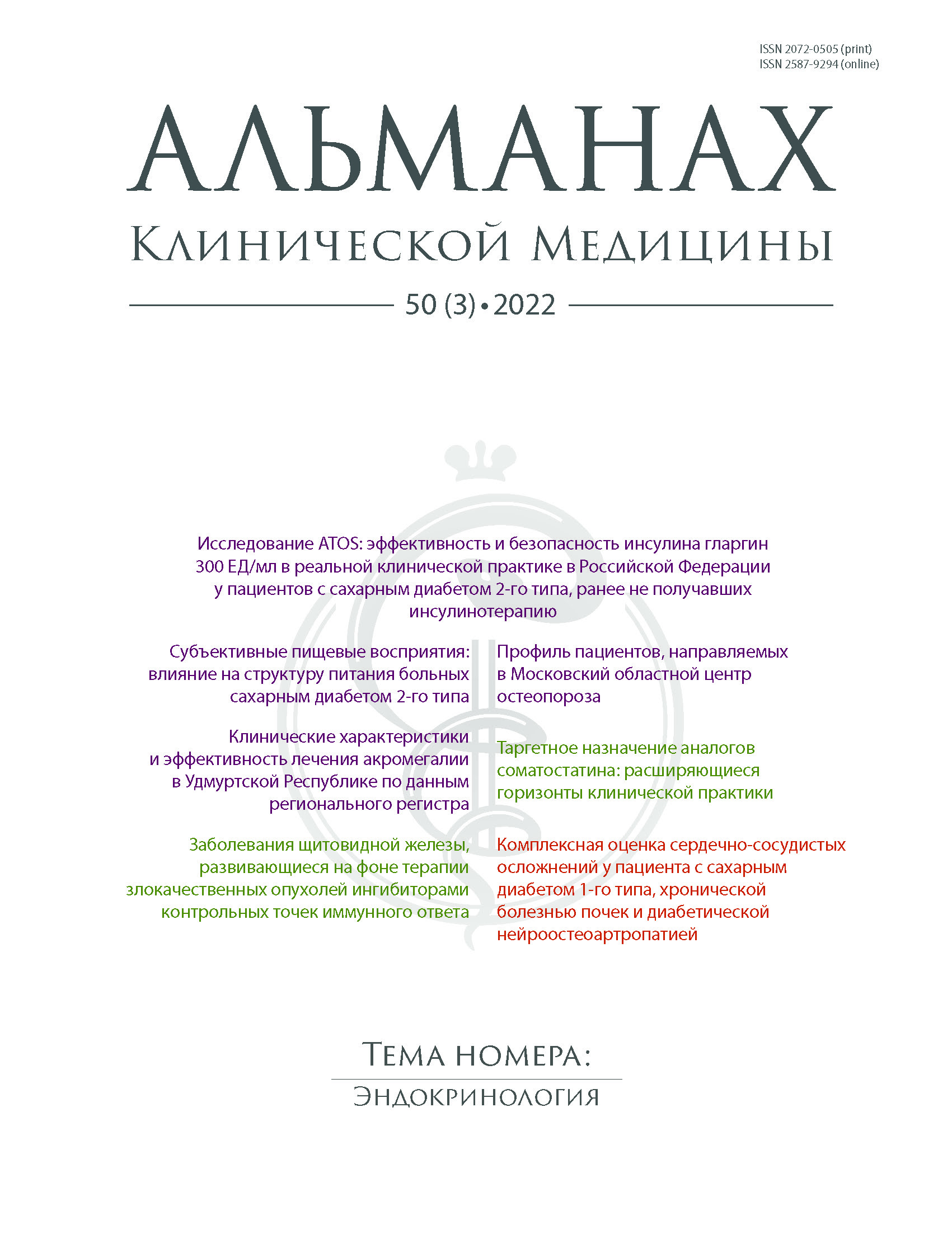 Materials and methods: We performed a cross-sectional study based on the registry of hypothalamic-pituitary tumors of the Udmurt Republic as per June 2022. It contains data from 77 patients with acromegaly. The study included 59 (76.62%) patients with the information sufficient for evaluation of the disease stage and its complications.