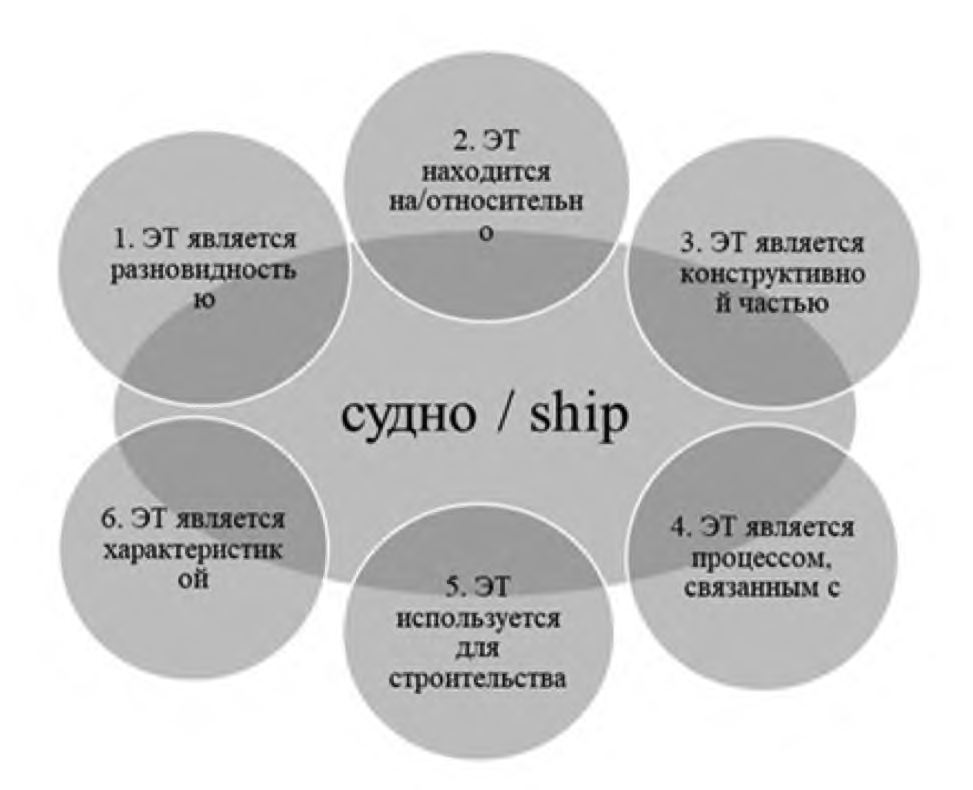 Fig. 1. Distinguishing factors to correlate shipbuilding terminology elements in English and in Russian with the prototype nucleus “ship”