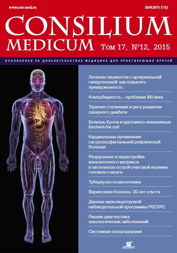 В прошлые годы вопросам кардиальных проявлений гастроэзофагеальной рефлюксной болезни (ГЭРБ), включая боль за грудиной, нарушения ритма сердца и проводимости, было посвящено много публикаций. Однако классификация ГЭРБ, принятая на Всемирном конгрессе гастроэнтерологов в Монреале в 2005 г., относит боли в грудной клетке к типичным, а не внепищеводным проявлениям заболевания, а аритмии и внутрисердечные блокады вообще не рассматривает в качестве синдрома, ассоциированного с ГЭРБ.К вероятным причинам болевого синдрома (БС) при ГЭРБ относят спазм гладкой мускулатуры пищевода в ответ на раздражение рефлюктатом его слизистой оболочки, висцеральную гиперчувствительность и ишемические боли, связанные с поражением сосудов атеросклеротическим процессом. В последнем случае БС не является прямым следствием ГЭРБ. Однако это заболевание имеет общие факторы риска с ишемической болезнью сердца (ИБС), что обусловливает их коморбидное течение (среди лиц с ИБС распространенность ГЭРБ выше, чем в общей популяции). Кроме того, есть данные, что раздражение рефлюктатом слизистой оболочки пищевода способно вызывать рефлекторный спазм коронарных артерий, что сопровождается ишемическими проявлениями на электрокардиограмме и типичной клинической симптоматикой стенокардии. С этим могут быть связаны сложности дифференциальной диагностики пищеводных и ишемических болей.Транзиторные нарушения сердечного ритма и проводимости также являются одной из проблем при ведении таких пациентов, поскольку гастроэзофагеальные рефлюксы (ГЭР) способны выступать непосредственными триггерами аритмий. К механизмам относят дисбаланс вегетативных влияний на сердце, включая висцеро-висцеральные рефлексы, связанные с раздражением слизистой оболочки пищевода и опосредуемые через блуждающий нерв; воспалительный процесс, который способен переходить со стенки пищевода на рядом расположенную стенку левого предсердия; механическую компрессию передней стенки левого предсердия проходящей по пищеводу пищей.Таким образом, современная классификация ГЭРБ не предусматривает наличия кардиального синдрома среди внепищеводных проявлений заболевания. Боли ишемического характера и нарушения ритма сердца, связанные с ГЭР, следует рассматривать с позиций коморбидности.