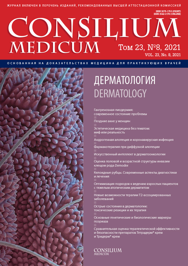 Оценка половой и возрастной структуры инвазии клещом рода Demodex и процента осложнений акнеформных дерматозов вторичным демодекозом в зависимости от их степени тяжести