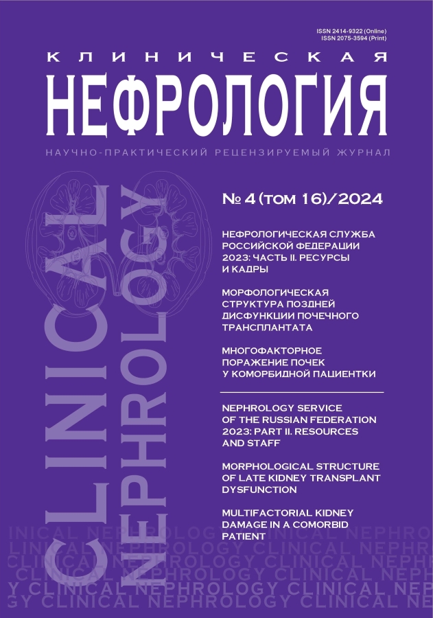 This article is the second part of the annual report of the Specialized Commission on Nephrology of the Ministry of Health of the Russian Federation [1] for 2024, which is published in two parts and presents data on the state of the nephrology service of the Russian Federation as of December 31, 2023. The data cover 98% of the subjects (except for the Chukotka Autonomous Okrug, the Altai Republic, Zaporizhia and Kherson regions), representing 99% of the population of Russia. The first part of the report was published in the " Clinical Nephrology" journal, issue No. 1 for 2024 [2].