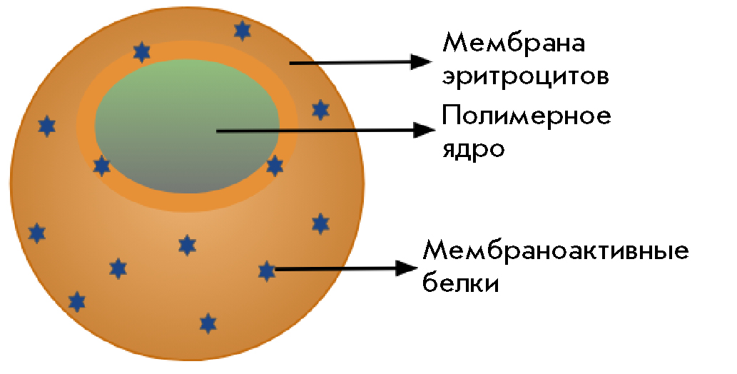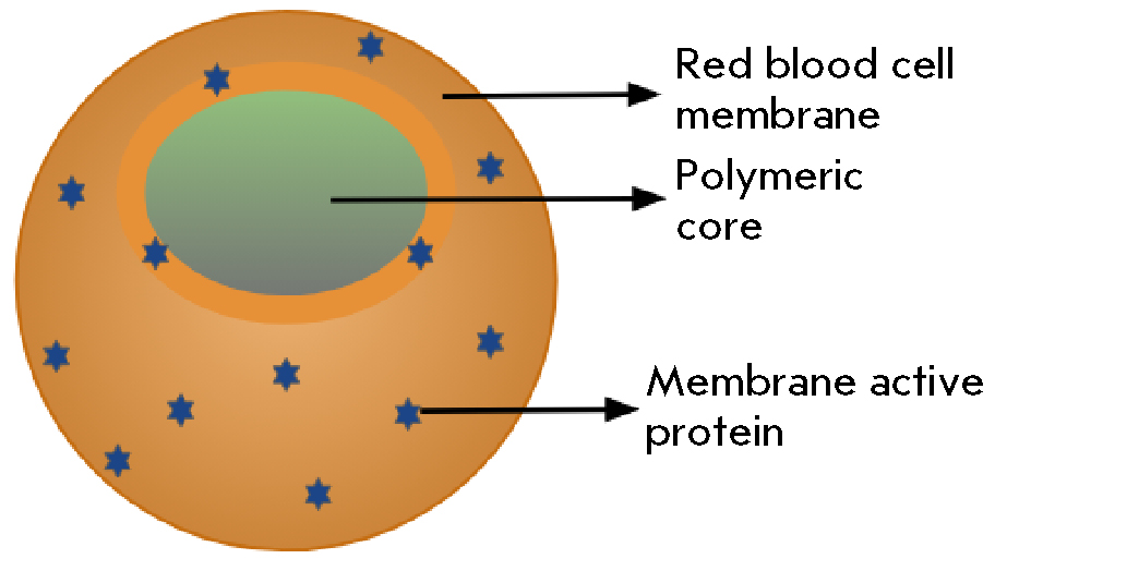 Fig. 2. Nanosponge structure that consists of a polymer-covered core with an erythrocyte membrane shell. Redrawn and modified from [55]