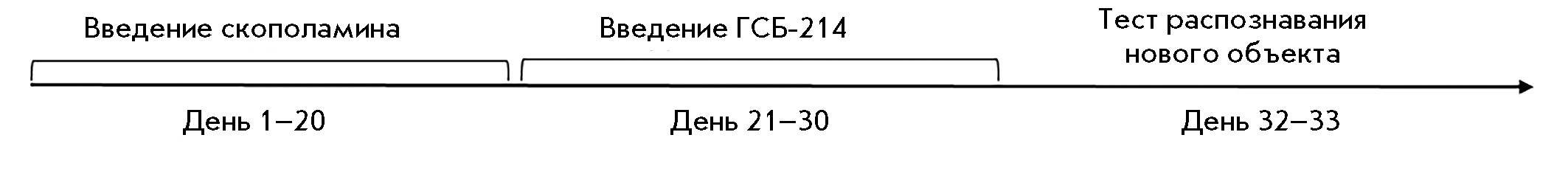 Рис. 2. Схема исследования мнемотропной активности ГСБ-214 на скополаминовой модели БА