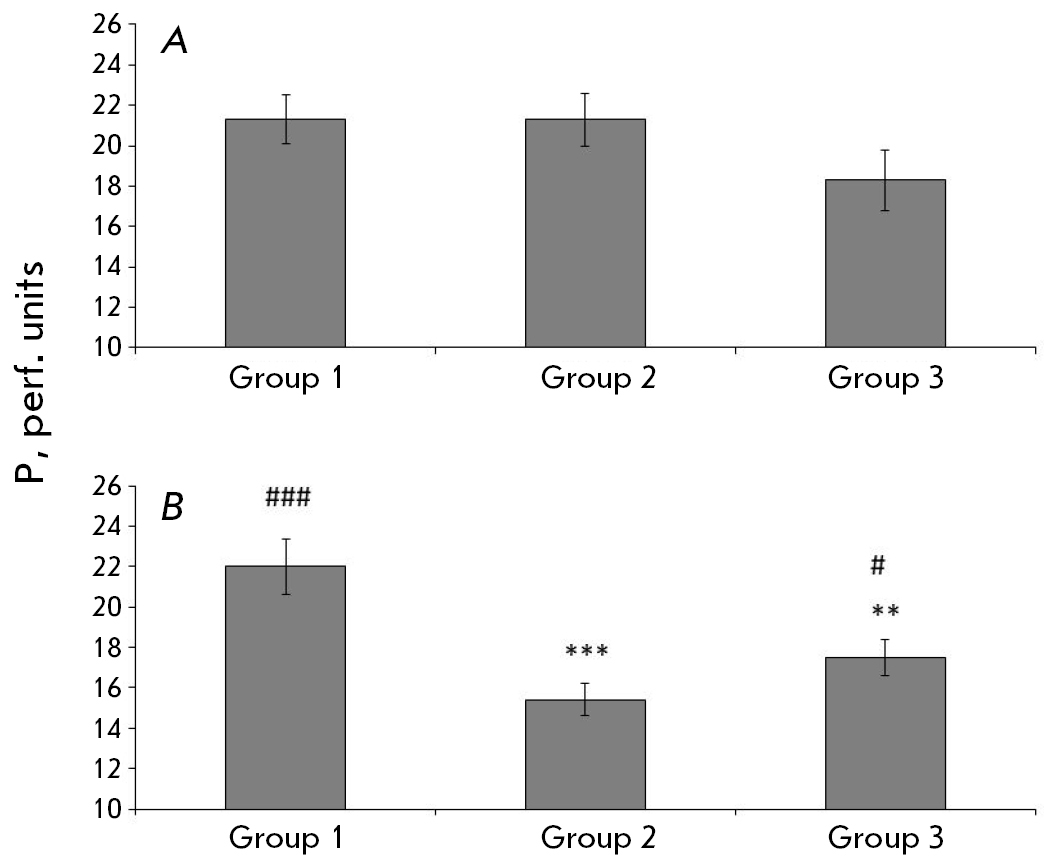 Horizontally – groups of experimental animals; vertically – perfusion (perf. units).
