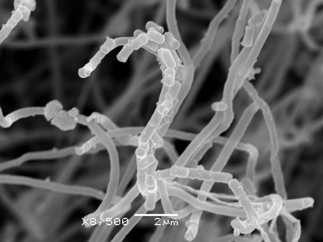 Fig. 2. Electron micrography of S. phaeochromogenes BV-204 on the 14th day of incubation on the ISP3 medium at 28°C. The dimensional cutoff is 2 μm