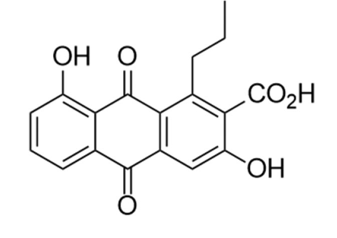 Fig. 4. Structure of the identified active component K-1115A (3,8-dihydroxy-9,10-dioxo-1-propylanthracene-2-carboxylic acid)