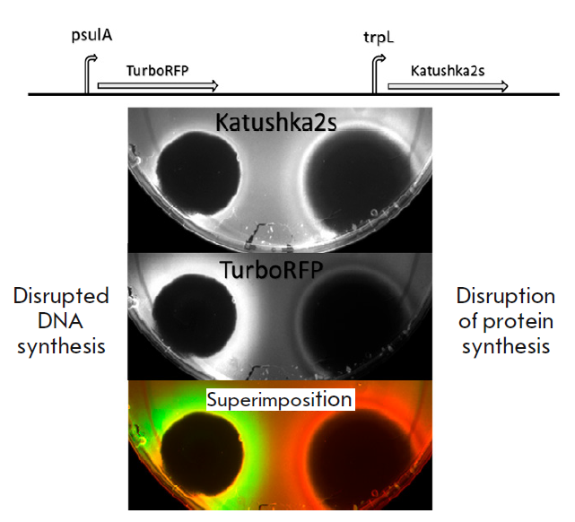Such new tools are target-based screening and the methods for determining the action mechanism of a molecule at the initial stages of research. These tools allow one to focus a search on the antibacterial agents specific to the most promising targets and may even accelerate molecule identification. Currently, we are successfully utilizing a reporter system in which compounds that inhibit protein or DNA biosynthesis are detected by fluorescent protein reporter gene expression in response to this inhibition. The relevance of this approach lies in that a ribosome is a key element in the functioning of a living cell, and considering the significant differences in the structures of the ribosomes of pro- and eukaryotes, it creates an opportunity to produce a highly specific effect on bacterial ribosomes and significantly increase the chances of developing drugs with good therapeutic properties.