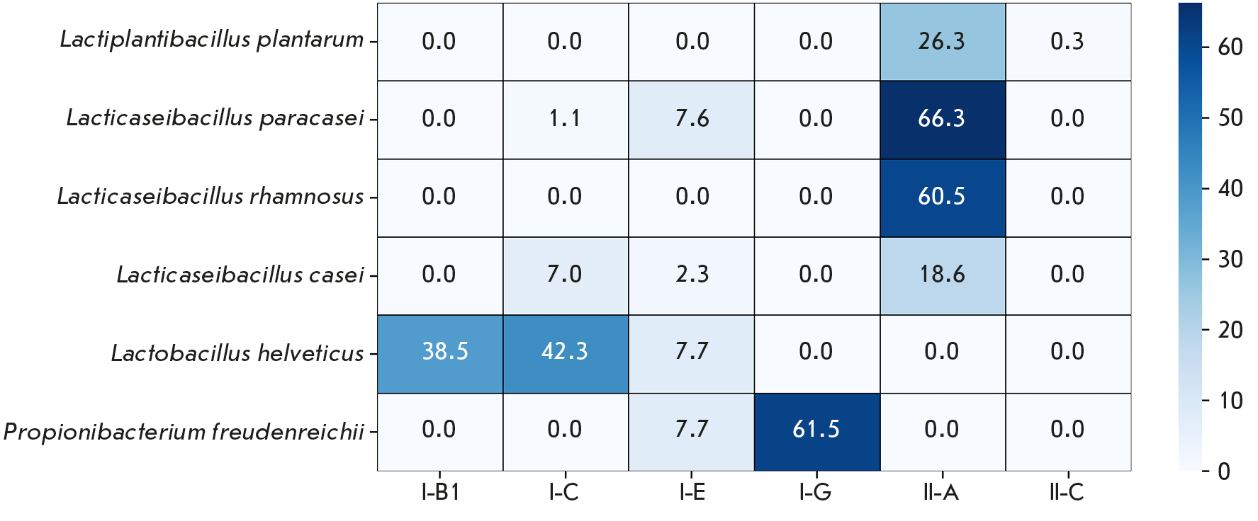 Fig. 1. Proportion (%) of CRISPR-Cas Systems in the Genomes of LAB
