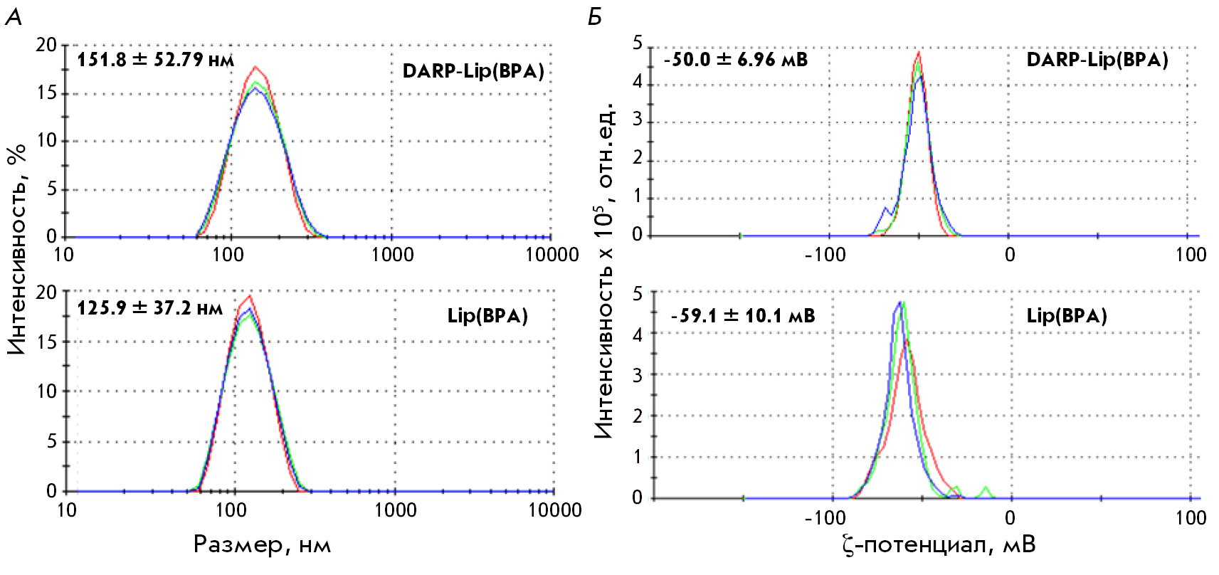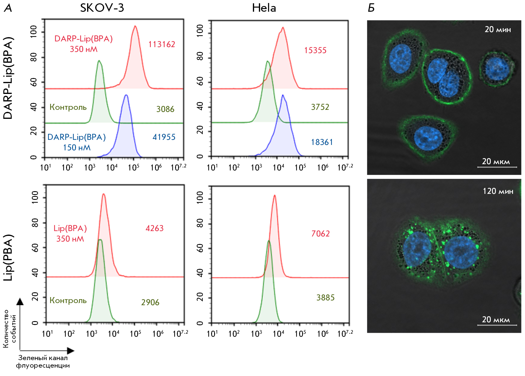 To be used in confocal microscopy and flow cytometry experiments, the DARP-Lip(BPA) samples were conjugated to AF-488 hydroxysuccinimide ester (Lumiprobe, Russia), according to the manufacturer’s protocol.