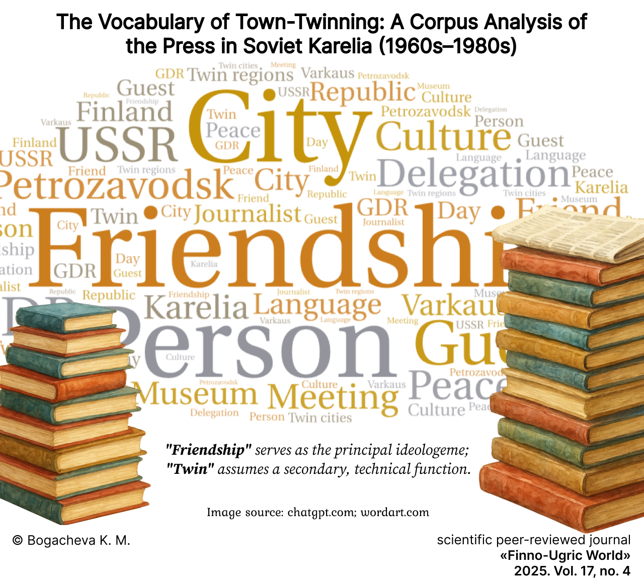 Introduction. The study of the functions of town-twinning city terminology in the regional press of the Soviet period constitutes a relevant scholarly issue. Existing historiography has not addressed this aspect, creating a necessity for the integration of linguistic analysis with a critical examination of Soviet ideology. The reconstruction of the mechanisms of propagandistic influence in the Soviet press allows for a deeper understanding of the nature of historical media discourses, while the analysis of materials from Karelian newspapers provides an opportunity to identify the specificities of how the image of international cooperation was formed, as well as the enduring linguistic patterns of the Soviet era. The aim of this research is to delineate the specific features and mechanisms through which the lexicon of town-twinning relations functioned within the local-historical and broader political context of the period.