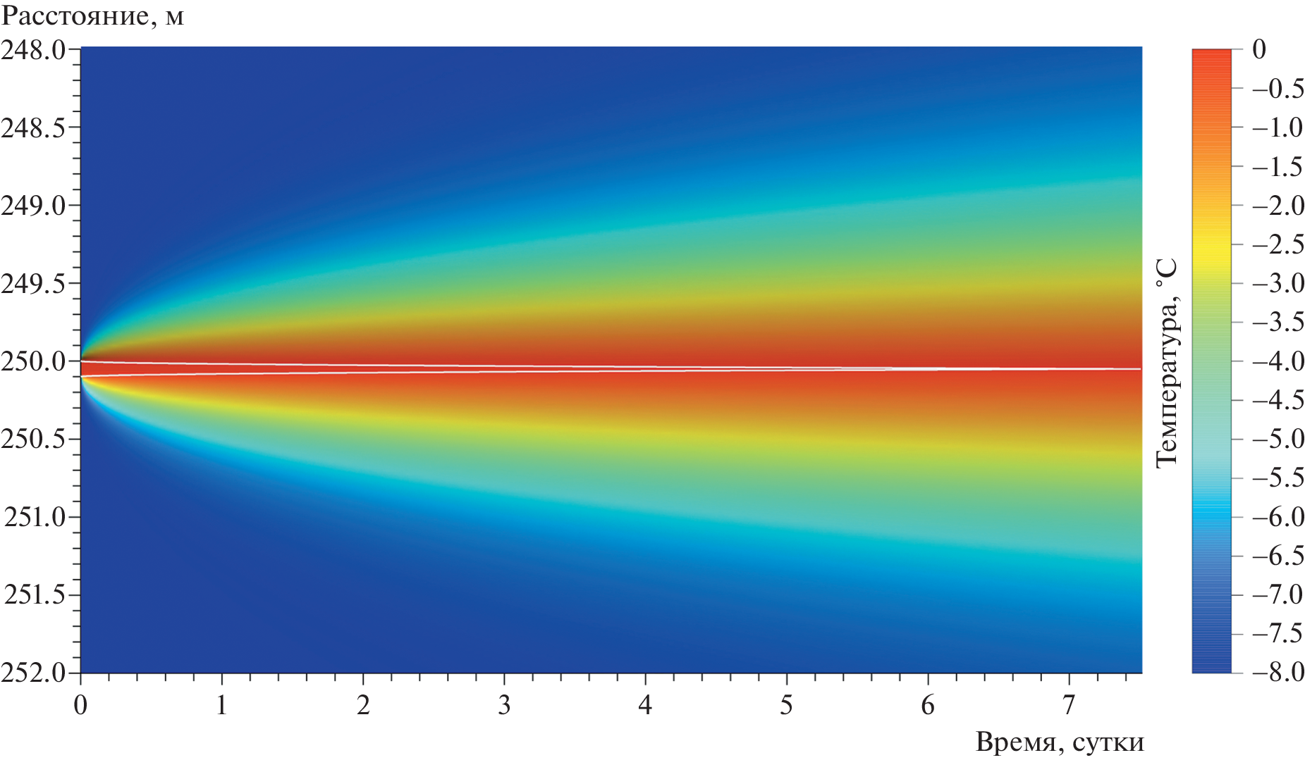 Представлено численное решение одномерной задачи Стефана с двумя фазовыми границами в виде конечно-разностных схем, реализованных на неравномерной сетке. Уравнения записаны в наиболее общей форме, то есть включают в себя не только кондуктивный, но также конвективный и диссипативный члены. В качестве примера выполнено оценочное моделирование процесса замерзания трещины в леднике, заполненной водой. Получено, что для ледников с температурой ниже –5°C время замерзания 30-сантиметровой трещины составляет менее трёх месяцев.