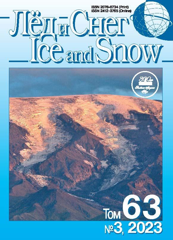 На основе данных ДЗЗ за 2000–2022 гг. выявлено изменение малого ледника № 31 (SU5A15106031), расположенного на Южно-Чуйском хребте Центрального Алтая. За это время ледник сократился на 144 м (на 6.8%) и потерял 0.089 км2 (9.7%) своей площади. Приведены результаты аэрофотосъёмки и радиолокационного зондирования нижней части языка ледника, выполненных в 2022 г.