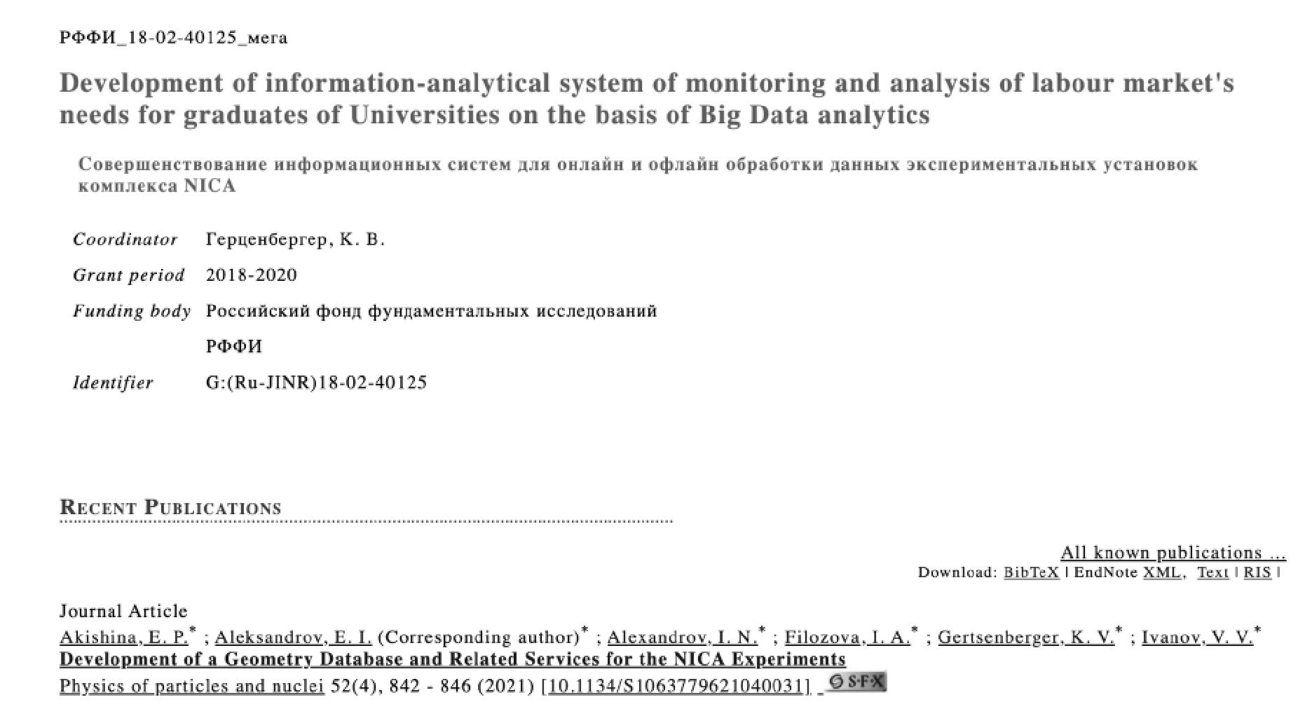 - Filozova Irina,Tatiana Zaikina, Galina Shestakova, Roman Semenov, Martin Köhler, Alexander Wagner, Laura Baracci on behalf of thе JOIN² project. 2020. JINR Open Access Repository based on the JOIN² Platform. Proceedings of the Data Analytics and Management in Data Intensive Domains 2020. CEUR Workshop Proceedings, 2790:142-155. Available at: http://ceur-ws.org/Vol-2790/paper14. pdf (accessed November 23, 2022).