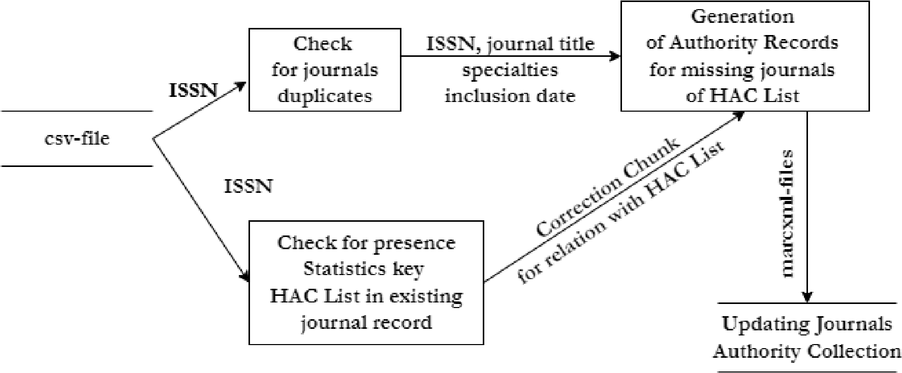 - Generation of journals authority records metadata absened in a system, in marcxml format for uploading with Statistics key HAC List.