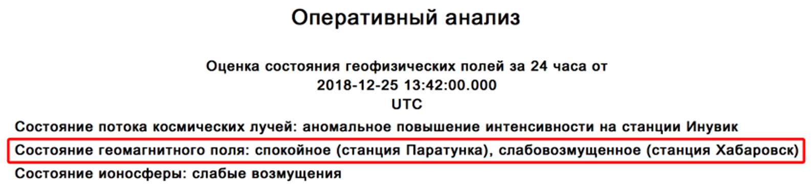 Обработка магнитных данных в системе выполняется один раз в час. Дискретизация данных составляет одну минуту. Система предоставляет в текстовом виде результаты оценки состояния геомагнитного поля станции «Паратунка» (Камчатка) и «Хабаровск» за последние 24 часа.