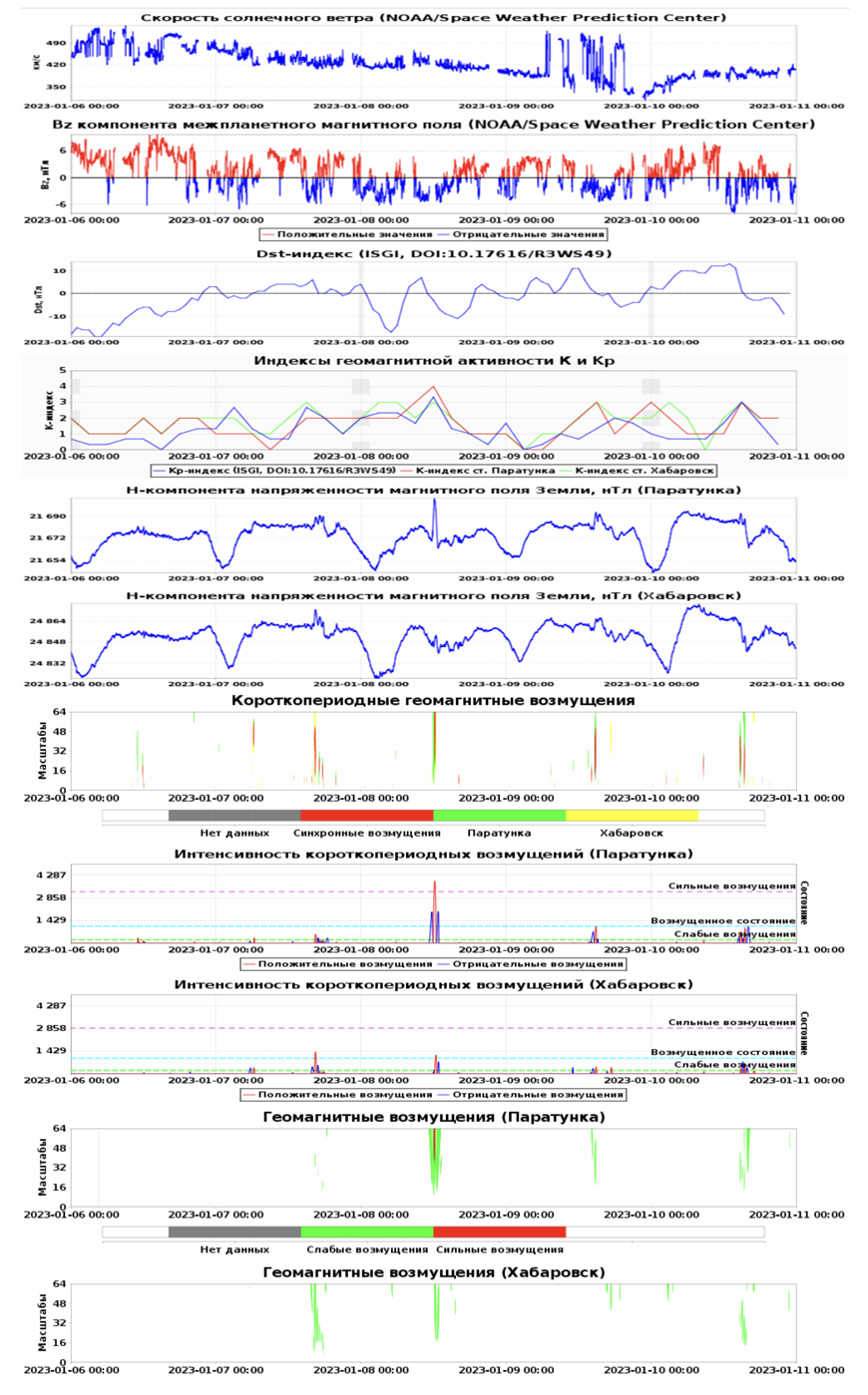 Рис. 5. Результаты работы геомагнитной компоненты системы «Аврора» в период 06–10 января 2023 г.