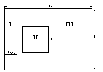 Задача 2. Была принята следующая постановка задачи в соответствии с экспериментом, описанным в работе [16]. Расчетная область MathType@MTEF@5@5@+= feaahGart1ev3aqatCvAUfeBSjuyZL2yd9gzLbvyNv2CaerbuLwBLn hiov2DGi1BTfMBaeXatLxBI9gBaerbd9wDYLwzYbItLDharqqtubsr 4rNCHbGeaGqiVu0Je9sqqrpepC0xbbL8F4rqqrFfpeea0xe9Lq=Jc9 vqaqpepm0xbba9pwe9Q8fs0=yqaqpepae9pg0FirpepeKkFr0xfr=x fr=xb9adbaqaaeGaciGaaiaabeqaamaabaabaaGcbaqefmuySLMyYL gaiuaajugybabaaaaaaaaapeGaa83eGaaa@3A74@  прямоугольная      [0, L x ]×[0, L y ]==[0,0.2]×[0,0.14] MathType@MTEF@5@5@+= feaahGart1ev3aaatCvAUfeBSjuyZL2yd9gzLbvyNv2CaerbuLwBLn hiov2DGi1BTfMBaeXatLxBI9gBaerbd9wDYLwzYbItLDharqqtubsr 4rNCHbGeaGqiVu0Je9sqqrpepC0xbbL8F4rqqrFfpeea0xe9Lq=Jc9 vqaqpepm0xbba9pwe9Q8fs0=yqaqpepae9pg0FirpepeKkFr0xfr=x fr=xb9adbaqaaeGaciGaaiaabeqaamaabaabaaGcbaGaaG4waiaaic dacaaISaGaamitamaaBaaaleaacaWG4baabeaakiaai2facqGHxdaT caaIBbGaaGimaiaaiYcacaWGmbWaaSbaaSqaaiaadMhaaeqaaOGaaG yxaiaai2dacaaI9aGaaG4waiaaicdacaaISaGaaGimaiaai6cacaaI YaGaaGyxaiabgEna0kaaiUfacaaIWaGaaGilaiaaicdacaaIUaGaaG ymaiaaisdacaaIDbaaaa@51C5@  (Рис. 4.2).
