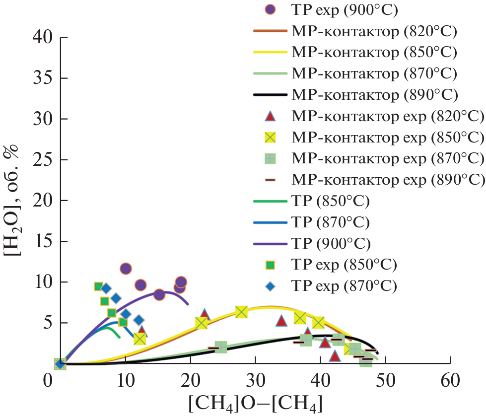 The article presents an analysis of the results of a kinetic study of dry reforming of methane (UCM) in reactors with traditional (TC) and membrane catalysts (MC). The kinetic experiment in reactors with MC and TC was performed in the temperature range of 820–900°C and the ratio CH4 : CO2 = 1 : 1. In the experiment, an intensification of the process of the methane cracking reaction was established, the rate constant of which increases by an order of magnitude. Such a difference in the results of the DRM on the studied catalysts are due to the intensification of mass transfer on the MC, which is based on the phenomenon of thermal slip. A mathematical description corresponding to the kinetic scheme of DRM process is proposed, and the rates constants of direct and reverse reactions in both reactors are found. In the DRM process, water gas is formed on the TC, and synthesis gas is formed on the MC. At TC, the DRM process is accompanied by the accumulation of carbon deposits (CD), and at MC this accumulation is absent. The DRM process on both catalysts is characterized by three main reactions (methane cracking, gasification of the CD with carbon dioxide and/or water vapor and the reverse water gas shift), which were assumed to be reversible under experimental conditions. It turned out that on TC the gasification of the CD occurs in the reverse reaction of methane cracking, and on the MC—in the reactions of gasification by water vapor (mainly) and carbon dioxide. The process on the MC is characterized by irreversible reactions of methane cracking, gasification of the CD with water vapor and carbon dioxide. The reverse water gas shift reaction on the MC remains reversible, and its rate constants of the direct and inverse reactions turned out to be an order of magnitude lower than similar constants on the TC.