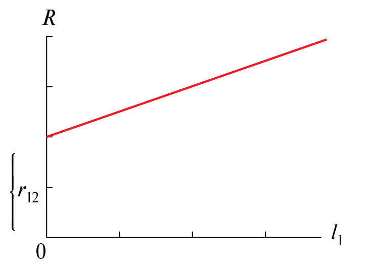 Рис. 3. Зависимость сопротивления бислойной мембраны от толщины селективного слоя в случае, когда диффузионное сопротивление промежуточного слоя существенно меньше сопротивления селективного слоя ()