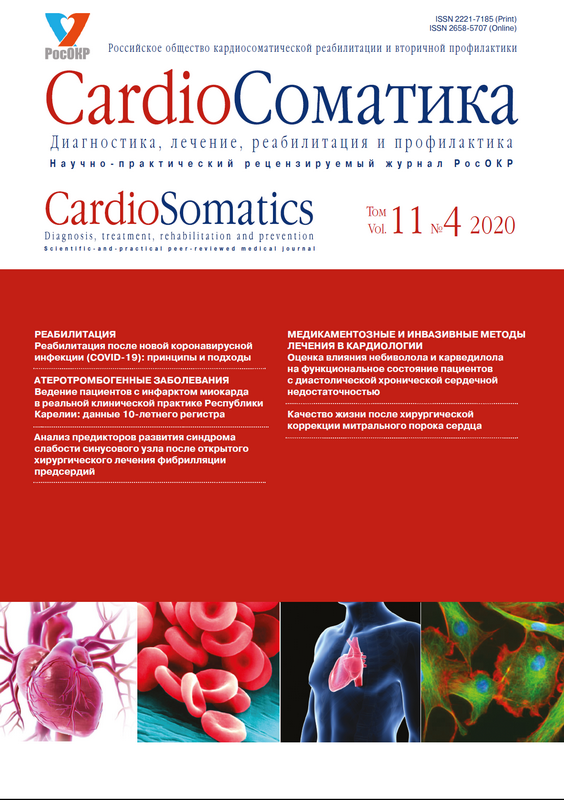 - Базылев В.В., Немченко Е.В., Абрамова Г.Н., Карнахин В.А. Качество жизни у больных после хирургического лечения фибрилляции предсердий. CardioСоматика. 2017; 8 (3): 22–8. [Bazylev V.V., Nemchenko E.V., Abramova G.N., Karnakhin V.A. Quality of life in patients after surgical treatment of atrial fibrillation. Cardiosomatics. 2017; 8 (3): 22–8 (in Russian).]