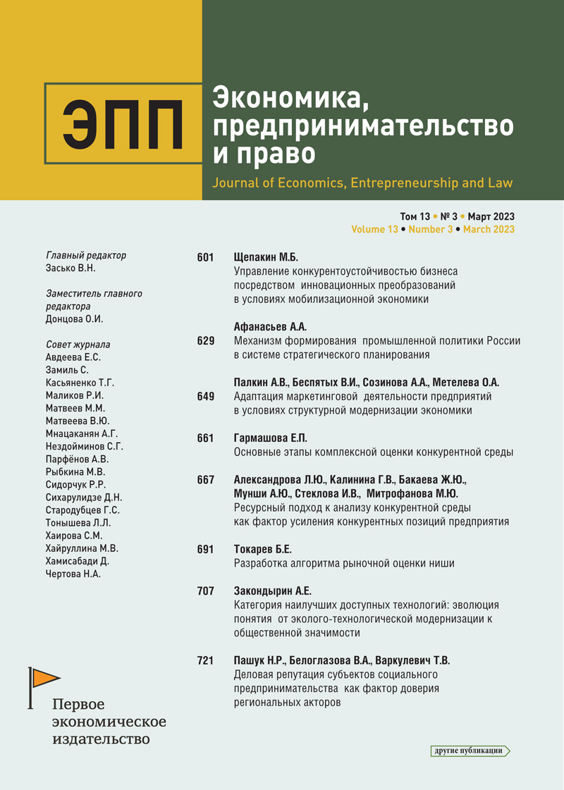 Journal of Economics, Entrepreneurship and Law. 2023;13(3):691-706