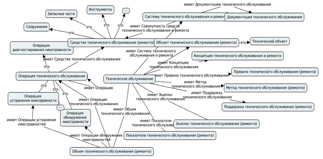 Рисунок 3 – Фрагмент онтологического шаблона содержания для процессов технического обслуживания и ремонта [19]