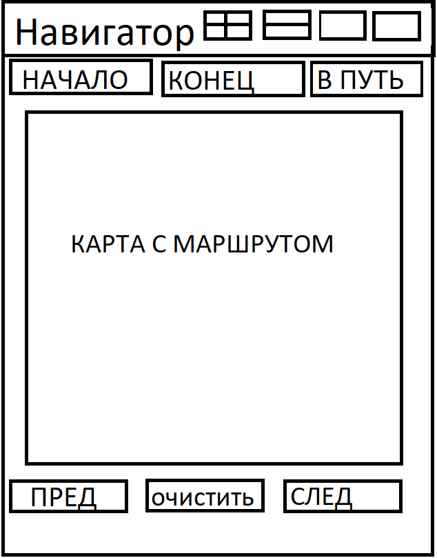 - очистить (стирает маршрут из памяти и экрана, а также блокирует соседние кнопки);