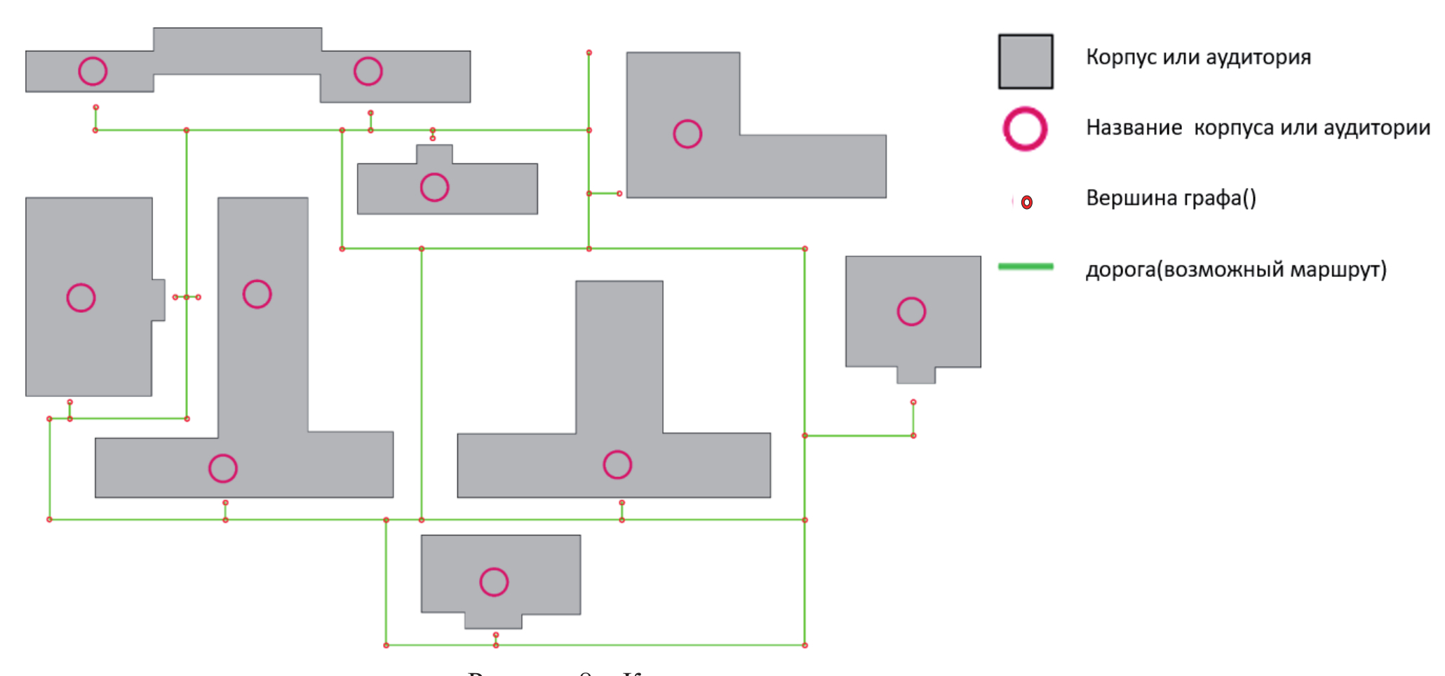 На рисунке 8 представлен пример изображения карты возможных маршрутов, которая обрабатывается вспомогательным сервисом.