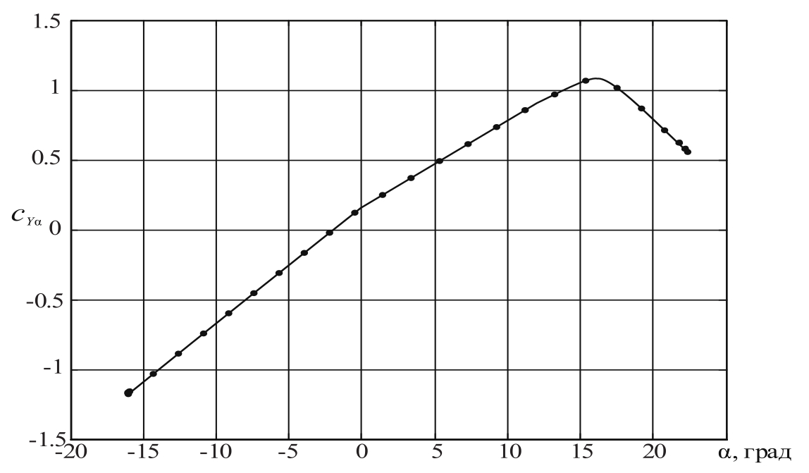 Рисунок 7 – Пример определения аэродинамического коэффициента подъёмной силы по результатам эксперимента