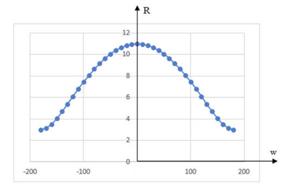 Рисунок 2 - Зависимость радиуса эксцентрических окружностей от параметра w (в градусах)