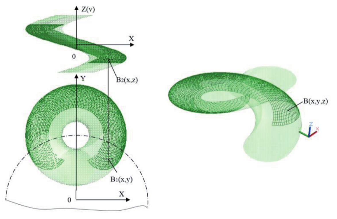 - геометрическим образом двух множеств является трёхмерный тор [15], являющийся моделью конфигурационного пространства рассматриваемого манипулятора;