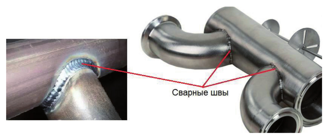 Предложенные конструктивные алгоритмы для решения позиционных задач могут быть использованы при проектировании и изготовлении различных изделий машиностроения. Например, при выполнении соединения деталей сварными швами (рисунок 10). Спроектированная теоретическая линия пересечения поверхностей деталей задаёт эквидистантную по отношении к ней траекторию перемещения рабочей точки электрода сварочного аппарата.