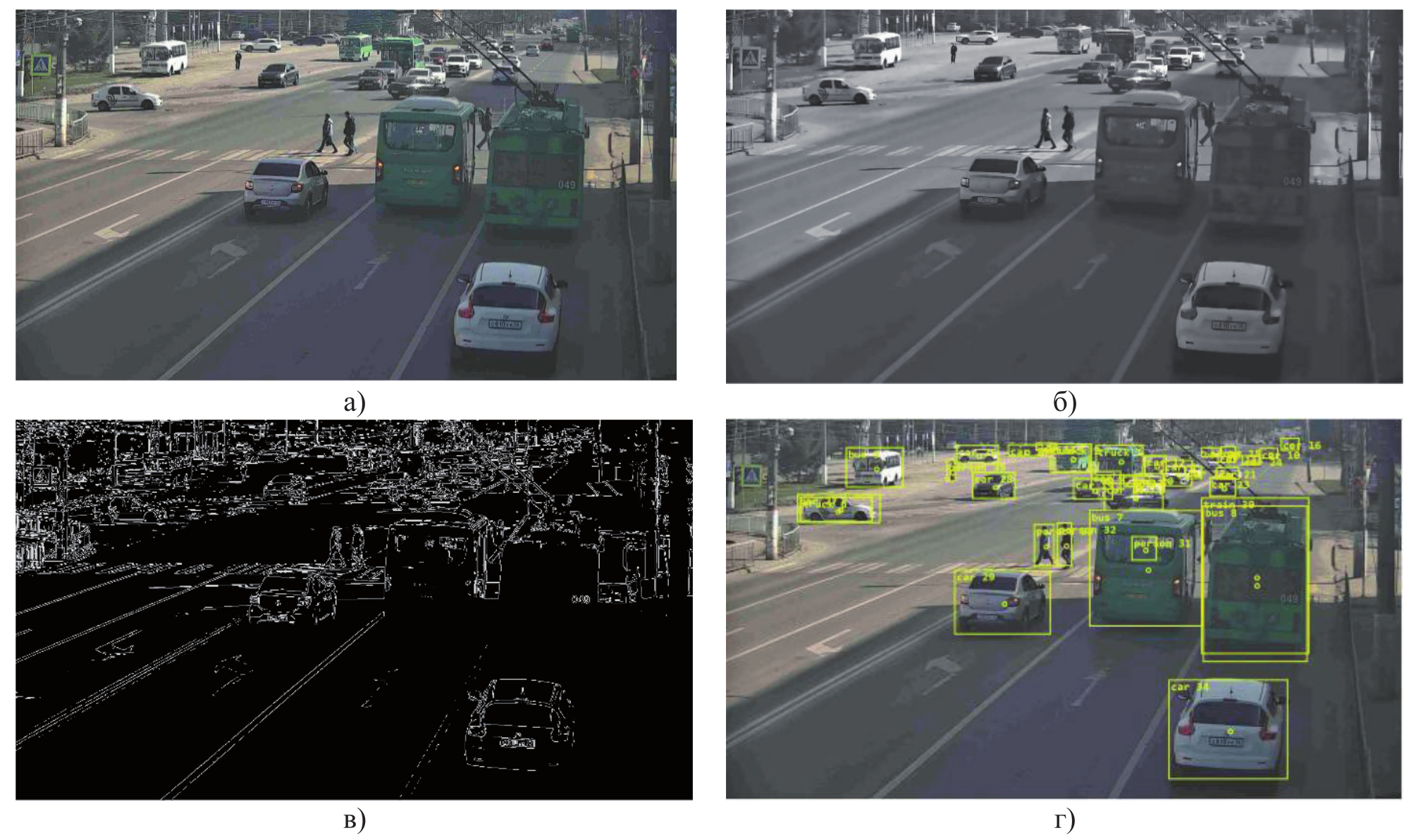 Существуют отрытые решения типа OpenCV (Open Computer Vision Library, библиотека алгоритмов компьютерного зрения, обработки изображений и алгоритмов общего назначения), которые позволяют решать подобные задачи. Наиболее распространённым из этих библиотек является нейронная сеть (НС) YOLO (от англ. You Only Look Once), которая способна детектировать объекты в режиме реального времени [10, 11]. Другими известными моделями машинного обучения, используемыми для детектирования объектов, являются конволюционные НС [12, 13].