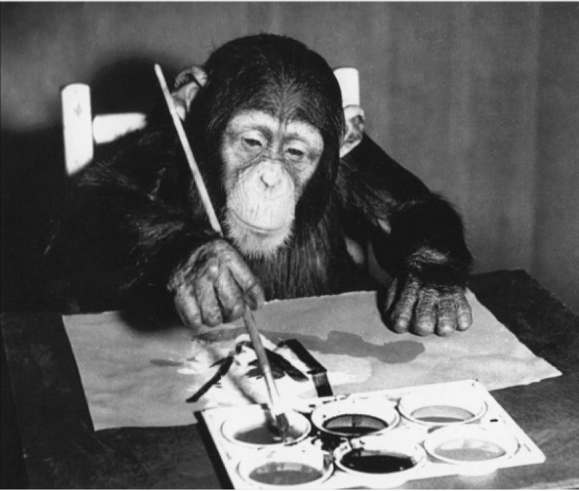 Достоверно известно, что обезьяны рисуют добровольно, спонтанно и полностью самостоятельно (см. фото).