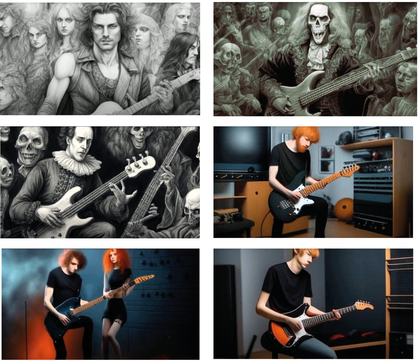 Приведенный пример демонстрирует способность нейросетей к последующей генерации образов сквозных персонажей, что позволяет в клипах на разные песни обращаться к сторителлингу легенды артиста.