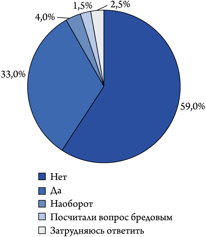 В рамках экспертного опроса респондентам было предложено подумать над вопросом 9, носящим скорее философский характер: «Согласны ли вы со следующим утверждением: “Искусственный интеллект может попасть в “цифровое рабство” к человеку”?». Большинство (59%) не рассматривает этот сценарий как вероятный (диаграмма 9). Но если допустить, что искусственный интеллект может быть в отдаленном будущем наделен правосубъектностью по аналогии с юридическим лицом, то положение, в котором он в таком случае окажется, вполне вписывается в определение понятия «рабство». Так, в соответствии с определением словаря Брокгауза и Ефрона существенная особенность рабства заключается в том, что господин владеет личностью своего раба на правах собственности [23]. В качестве собственности другого раб не принадлежит самому себе, его индивидуальность уничтожается, при этом все продукты рабского труда поступают в распоряжение владельца.