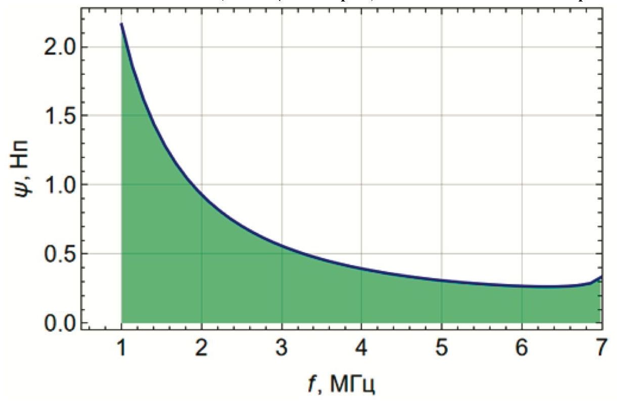 На рис. 12 показана зависимость поглощения (в неперах) от частоты в точке приёма.