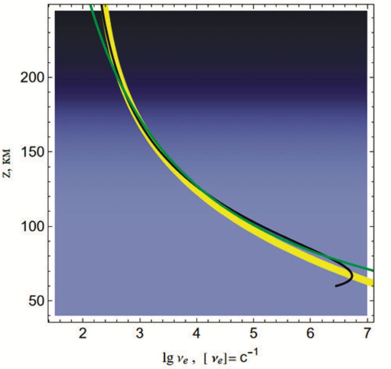 Настоящая работа посвящена определению эффективной частоты соударений электронов с нейтральными молекулами. Этот параметр определяет поглощение электромагнитных волн в ионосферных слоях и поэтому играет, совместно с распределением электронной концентрации, а также величиной и направлением магнитного поля Земли, важную роль при моделировании характеристик распространения радиоволн на ионосферных трассах [6].