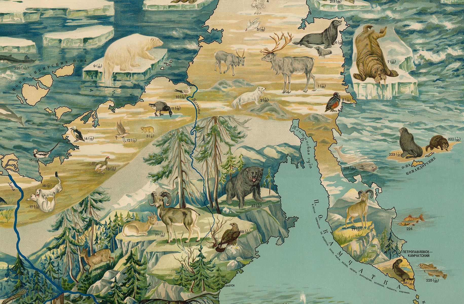 Рис. 1. Ермаков В. В. Зоогеографическая наглядная учебная карта СССР. 1929. Фрагмент