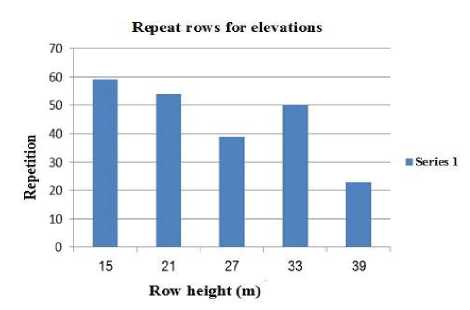It could be also follow up from Fig. 3 that the measured trees were distributed within five classes in terms of height, with a range of (6 m) between one row and the other. Most of the trees belong to the row of height (15–21–33), respectively. While the row of height 39 m accounted for the least number of trees.
