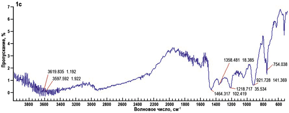 ИК-спектр 1в, см–1: 2937, 1467, 1364 (СН2); 758 (тризамещенное ароматическое кольцо); 1593 (C=C-аром); 1122 (С–N); 1707 (СООН); 1211 (С–О); 3621, 3695 (ОН) (рис. 4). Важно отметить, что в ИК-спектрах на рис. 4 присутствуют широкие полосы ОН-группы. Это указывает на образование внутримолекулярной водородной связи между водородом ОН-группы и азотом амина с образованием квазиароматического цикла [6, 34].
