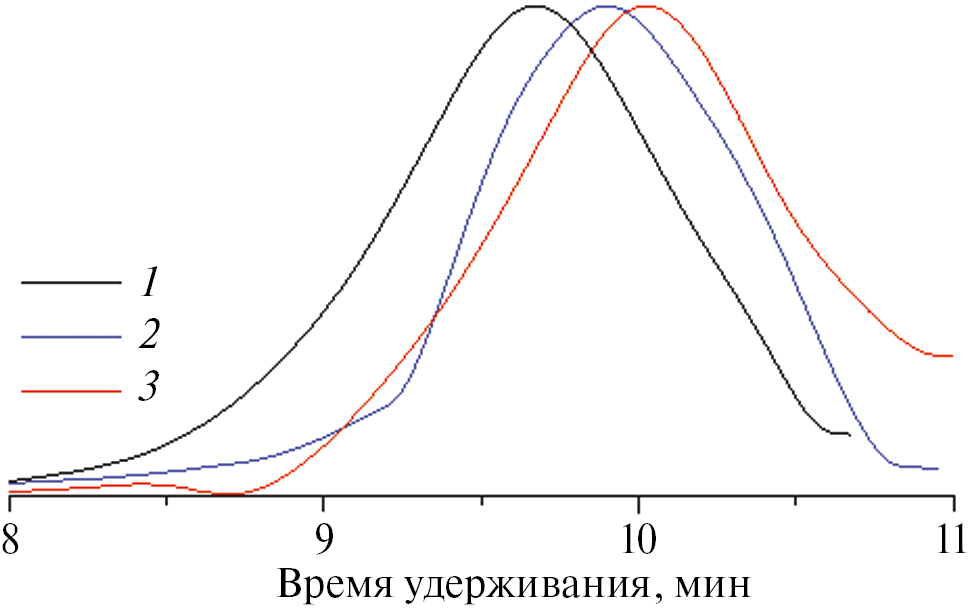 Рис. 6. Хроматограммы образцов полимерных щеток 1–3