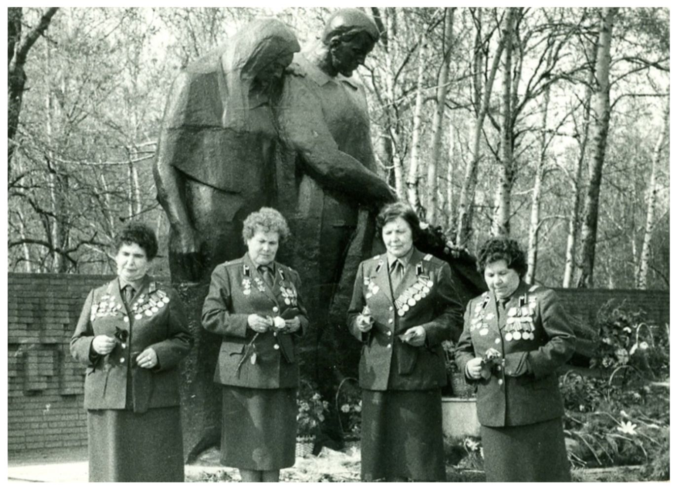 Другой этап создания мемориала заключался в установке памятника. Так 29.10.1968 г. по проекту скульптора В.М. Белова был поставлен знак коммеморации, представляющий собой скульптурную композицию, состоящую из фигуры «скорбящей матери и молодого воина» (см. рис. 1) [28].
