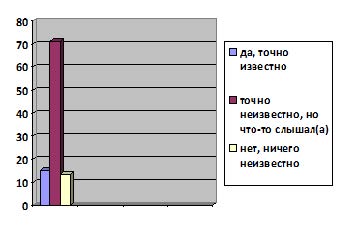 В г. Севастополь действует 33 национальных и культурных общества [5]. Однако только 15,3% обучающихся знают о таких организациях, 13,4% же вообще не знают, 71,3 % опрошенных что-то слышали о таких организациях, но не уверены (см. диаграмму 5).