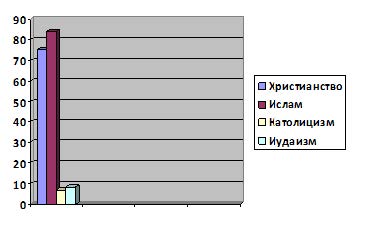 Также проверялись знания обучающихся о религиозном составе г. Севастополь. 75,3 % респондентов сказали, что в городе живут христиане, 84,3 % опрошенных отметили, что также на территории города проживают мусульмане и в центре города есть мечеть. При этом лишь 7,1 % вспомнили, что на территории города проживают католики, 8,3 % указали на иудеев, вспомнив, что в городе есть синагога (см. диаграмму 6).