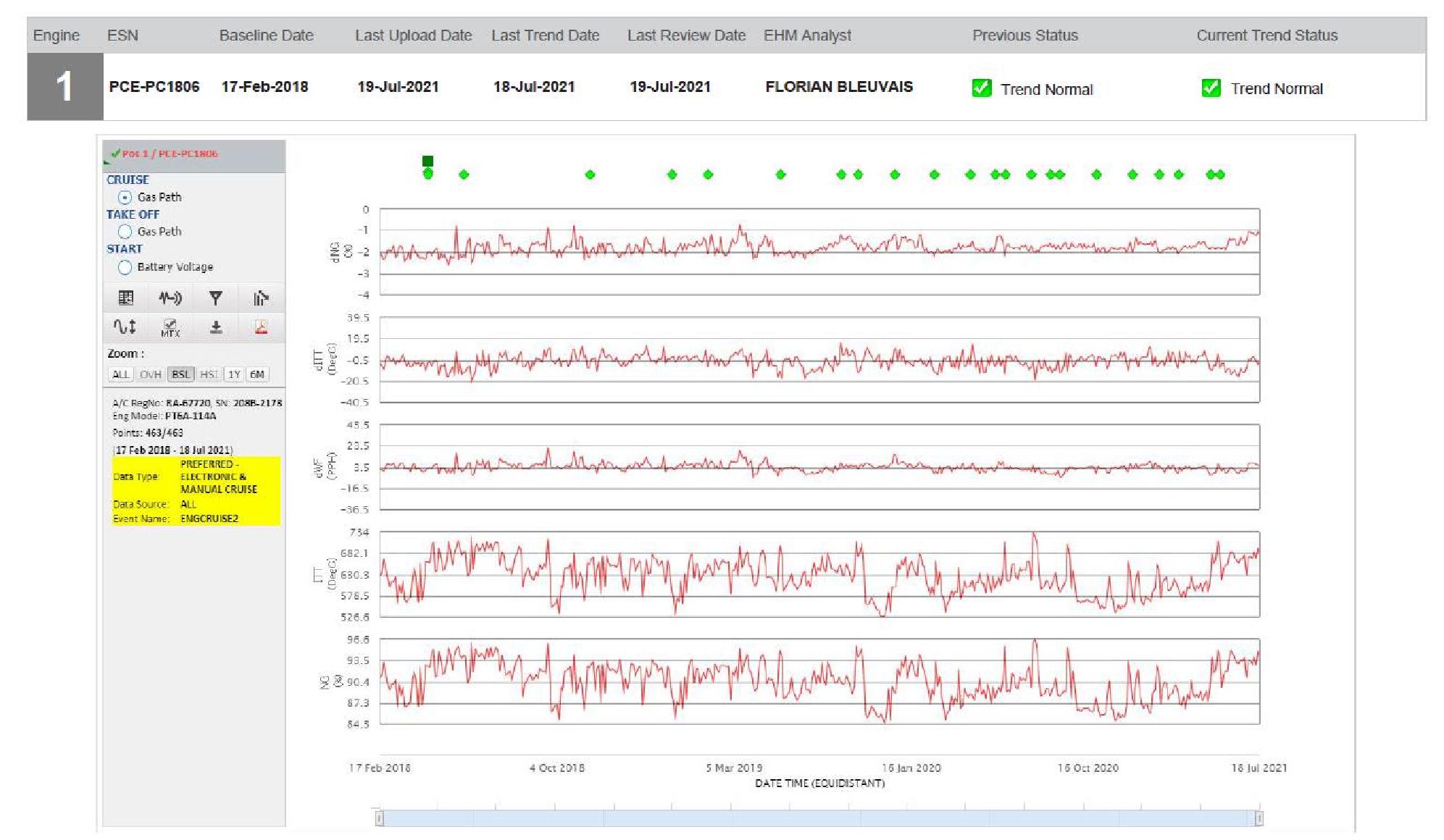 На рисунке 2 приведен пример отчета аналитической службы Camp о состоянии двигателя на основании анализа тенденций изменения его параметров ITT, Ng, Wf.