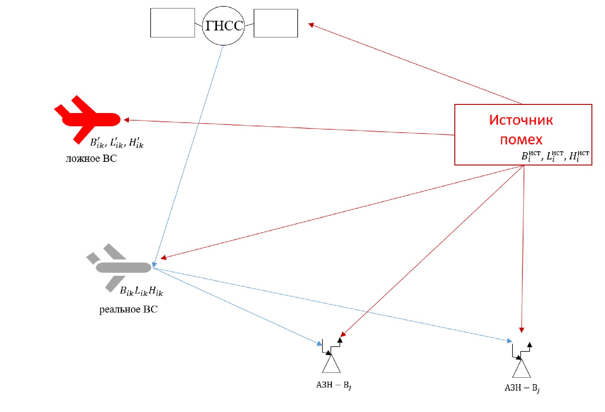 - В модели рассмотрен источник помех, воздействующий на безопасность полетов. Учитывая возможность спуфинга, компоненты предложенной модели способствуют выявлению преднамеренно ложных сообщений.