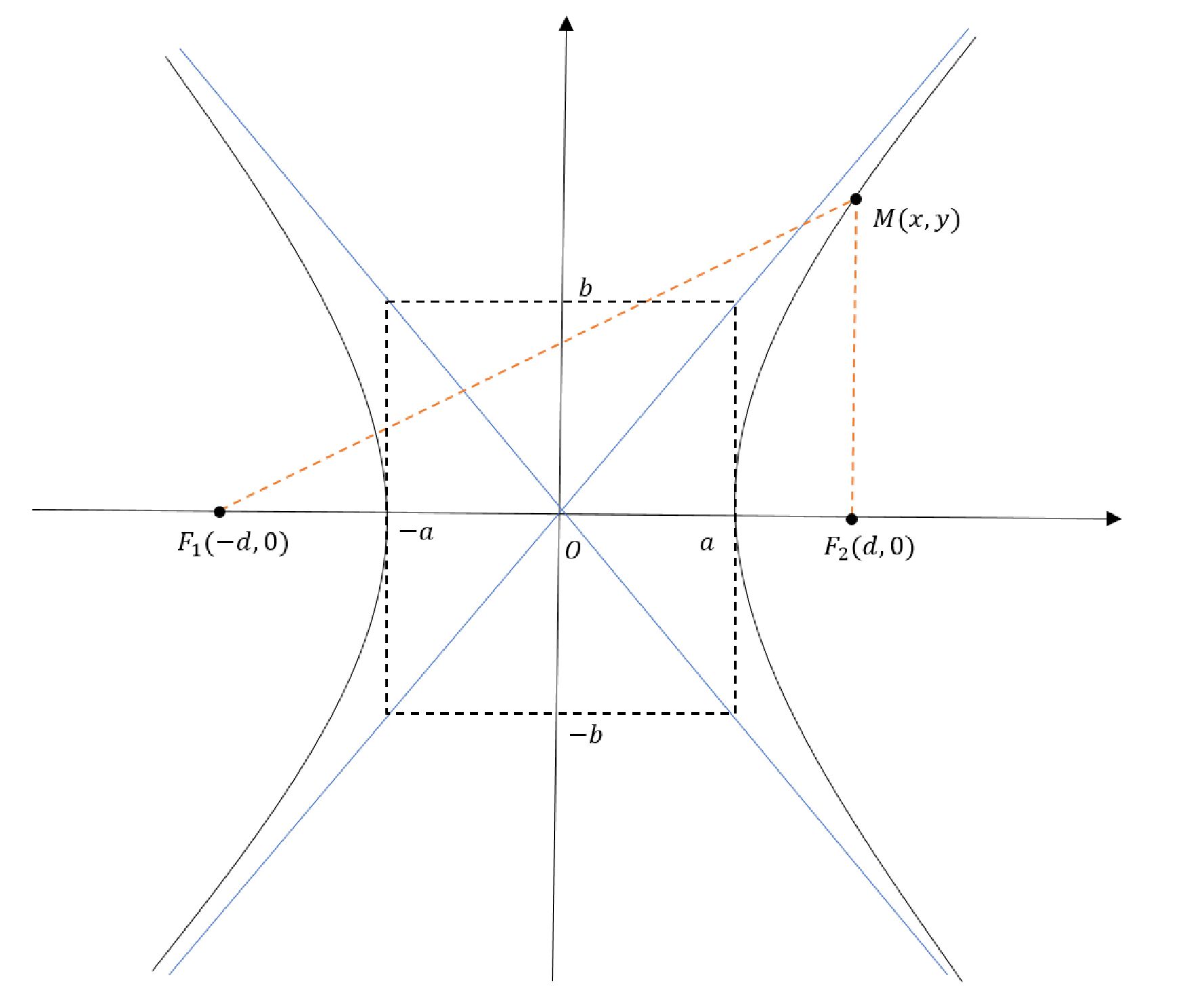 Пусть M (x, y) – произвольная точка, принадлежащая гиперболе, тогда, согласно известным свойствам гиперболы, можно записать условие: