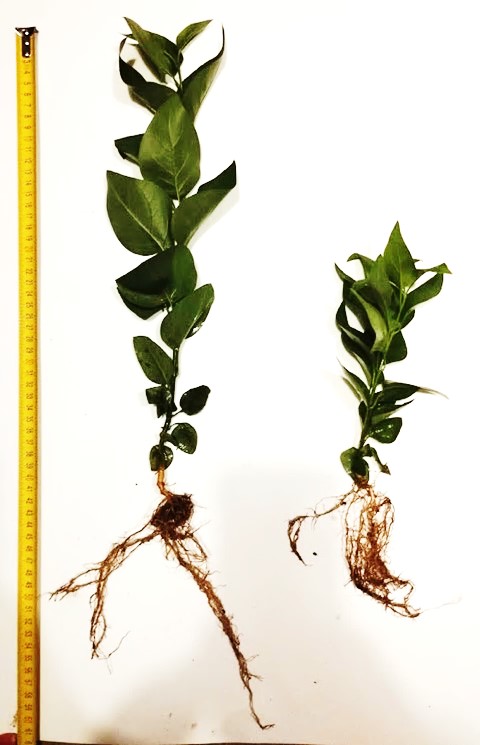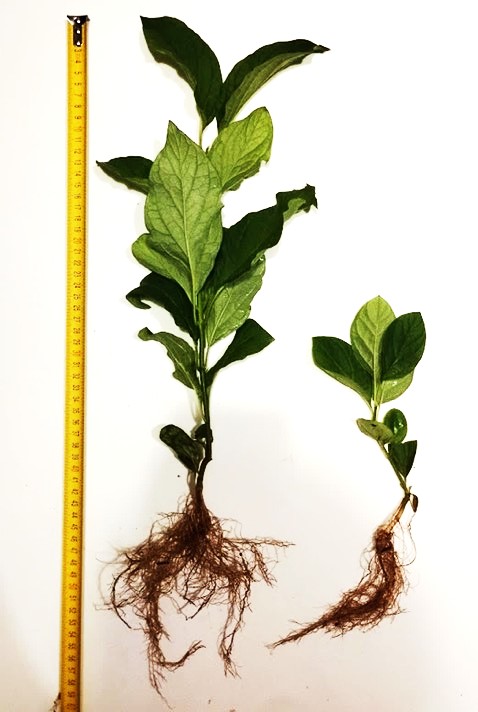 Рисунок 9 – Сеянец сирени венгерской, выращенный в защищенном (слева) и открытом грунте (справа)